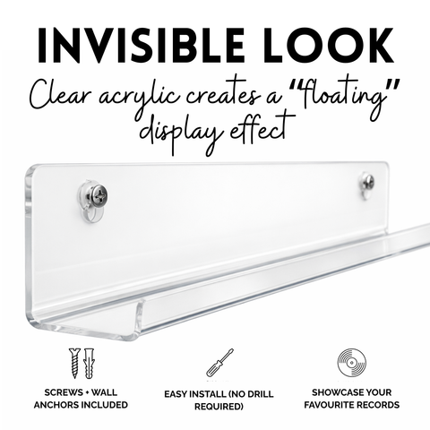 The Ghost Rack is a crystal-clear acrylic wall mount designed to make your album artwork float effortlessly on your wall. Minimal, sturdy, and almost invisible — it lets your music do the talking.