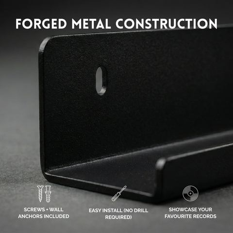 Blacksmith Racks are forged from solid metal and finished in deep matte black for serious strength and timeless style. Designed for vinyl lovers who want their records displayed with confidence — not compromise.